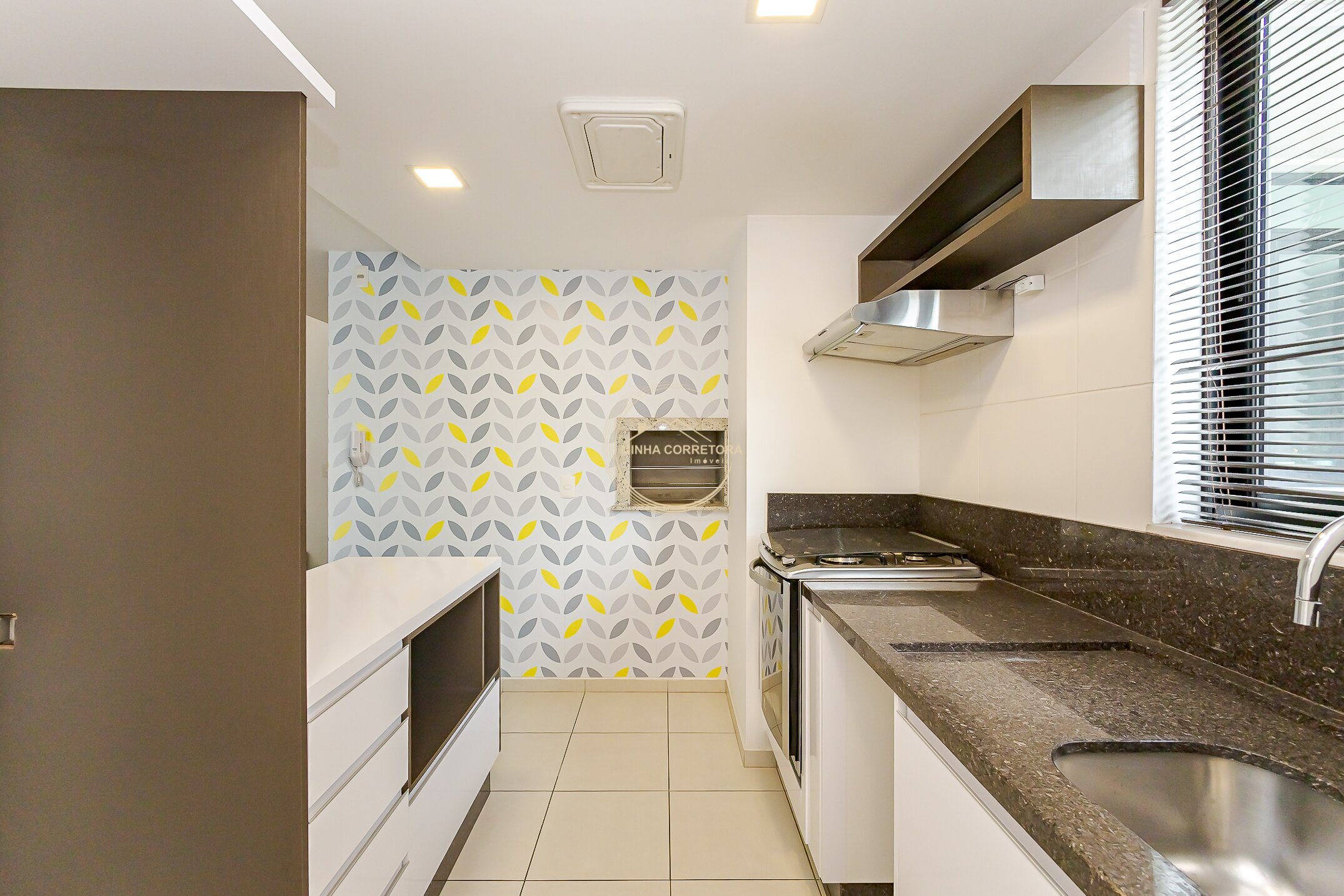 Cozinha planejada com bancada em granito;