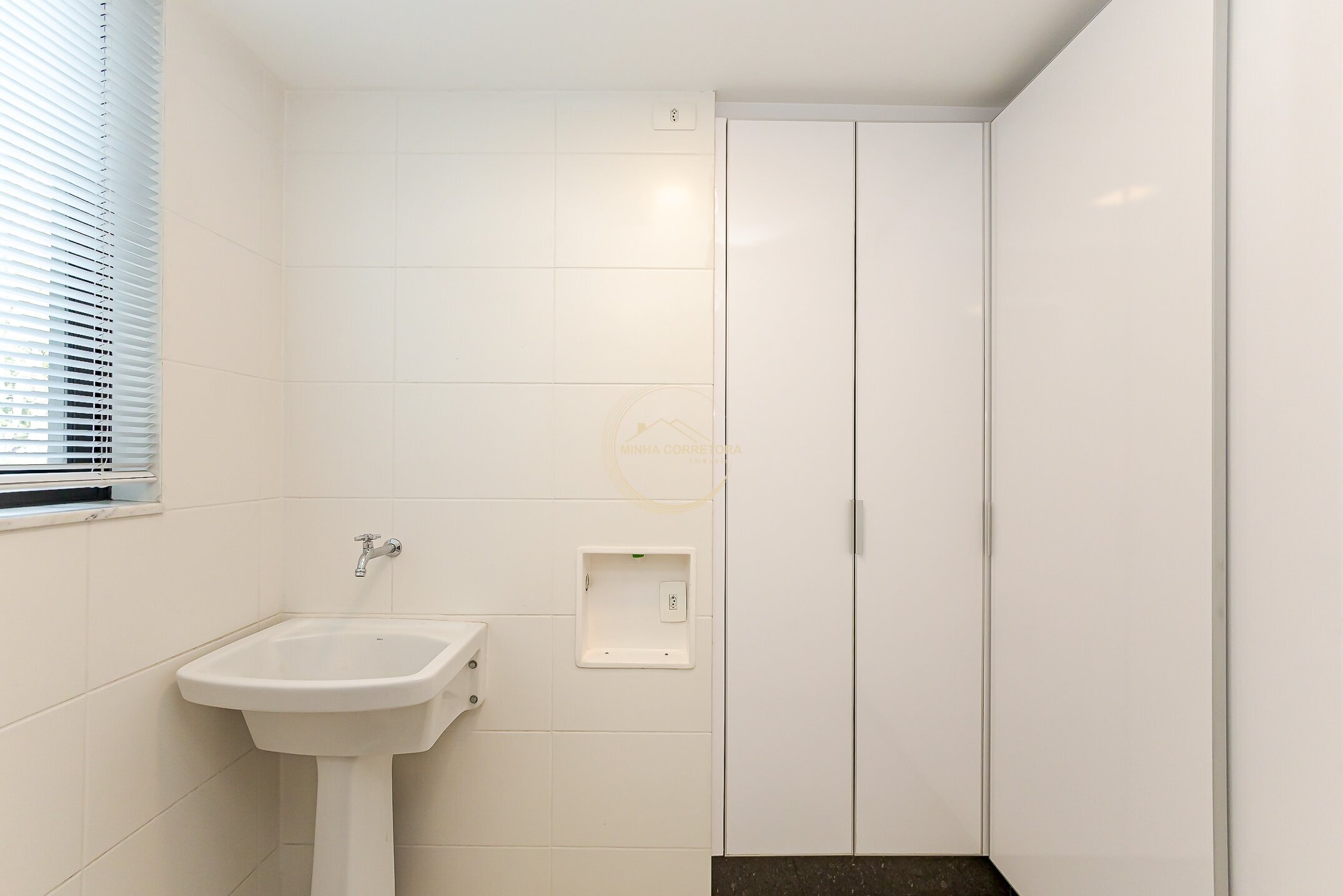 Área de serviço com armários e separada da cozinha;