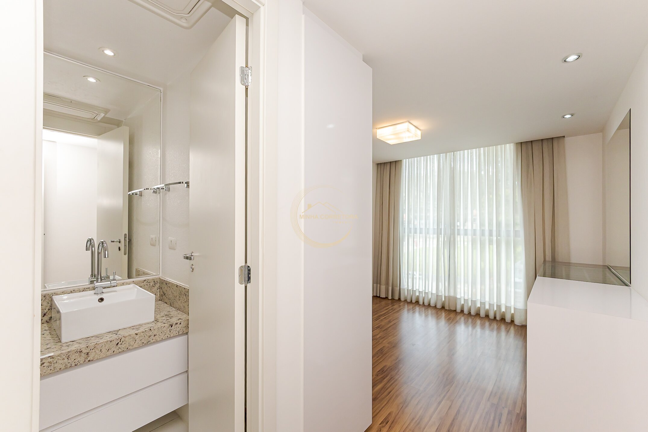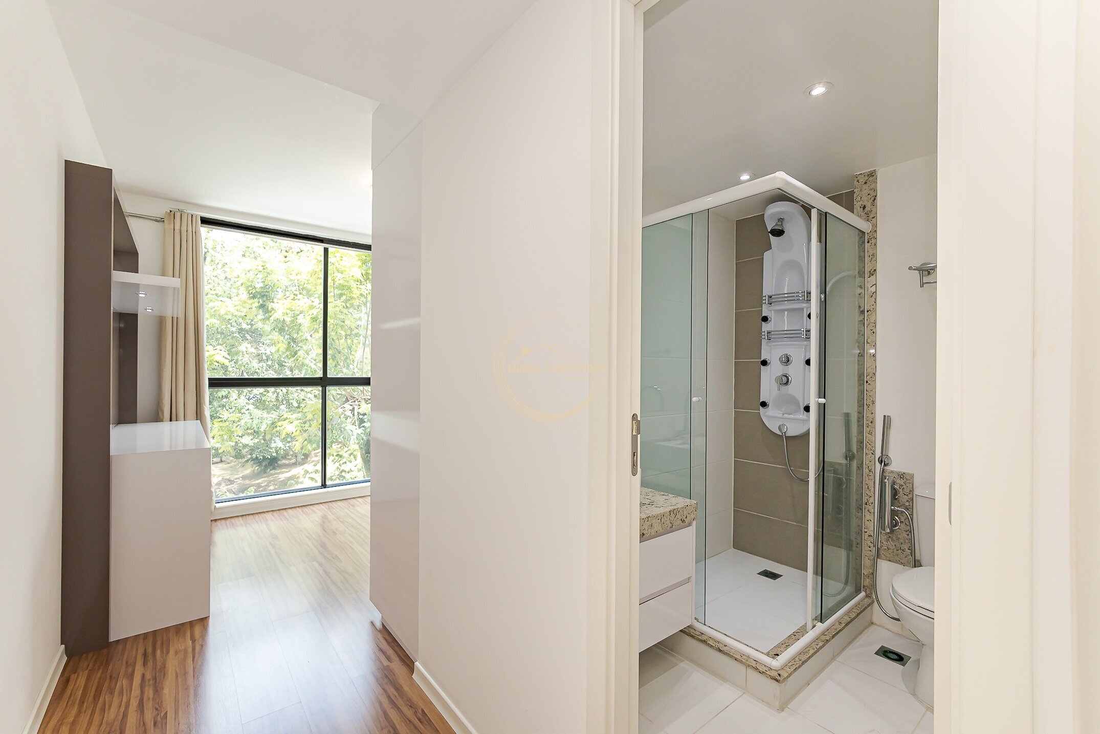 Suítes espaçosas, com ventilação cruzada e esquadrias amplas;