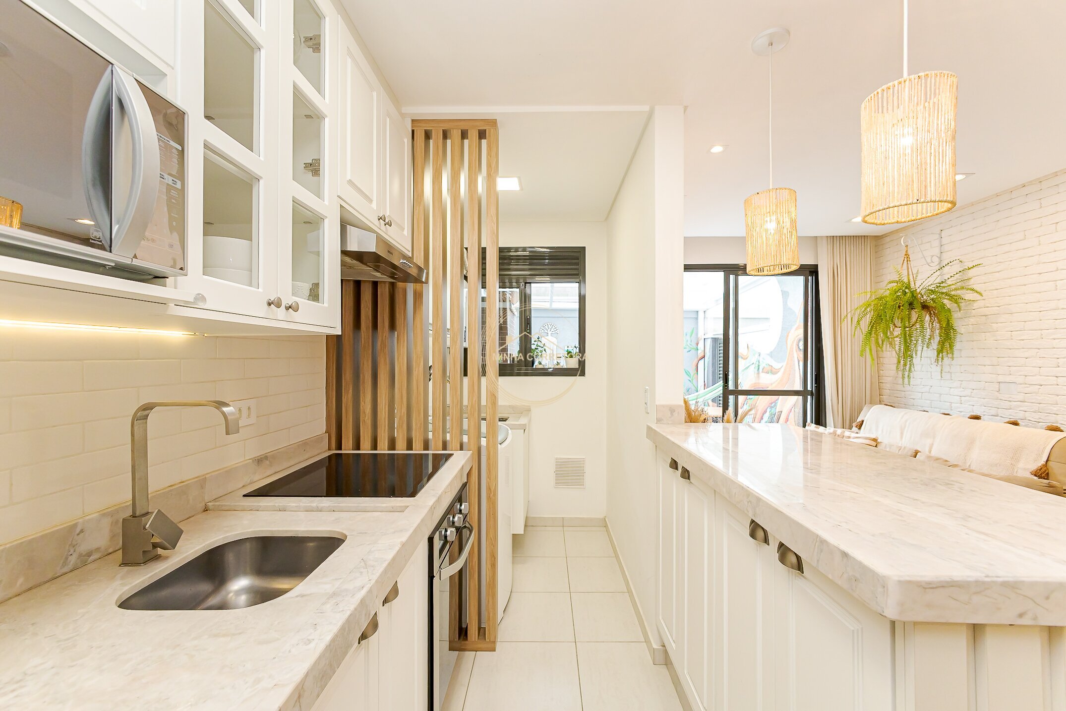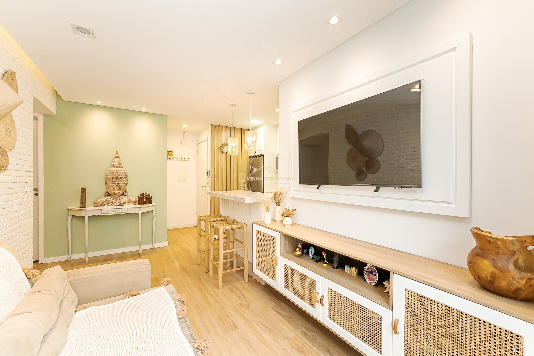 O apartamento é ensolarado e arejado, com ótima iluminação natural que valoriza ainda mais os espaços integrados.